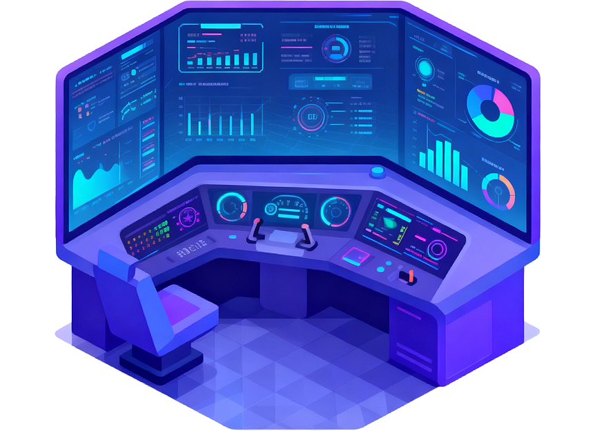 We integrate AI-powered RPA for automated front-end operations (with human intervention for exceptions), a data cockpit for trend analysis and decision support, immersive corner LED/displays (including cubic and irregular screens), and AI-aided programming, resource management, and robotic operation & maintenance for back-end management. This end-to-end solution drives efficiency, data-driven decisions, and engaging visual experiences.